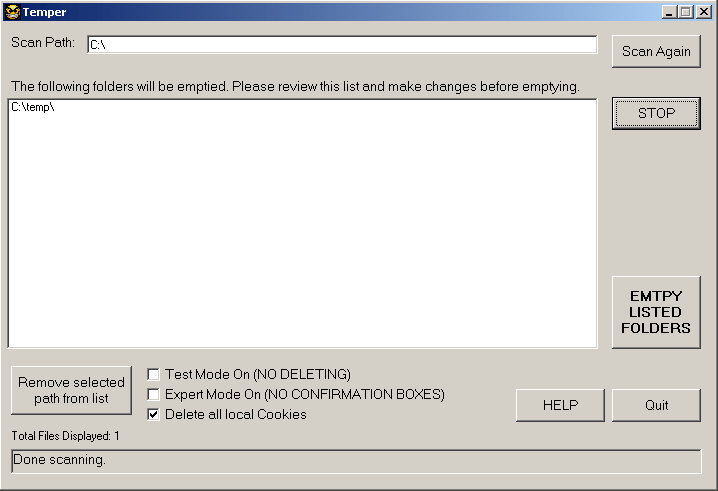 the same folder where TEMPER.EXE is will make it work. I'll have to