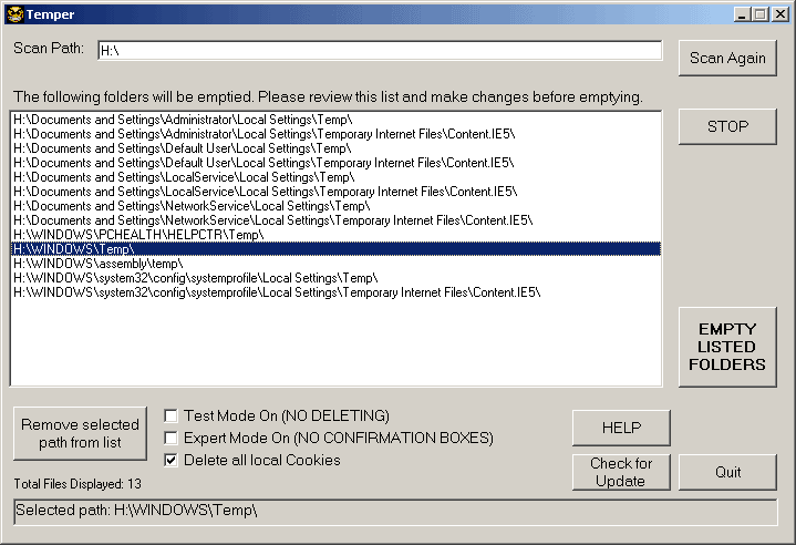 and include highlighting the folders that are definitely Windows Temp