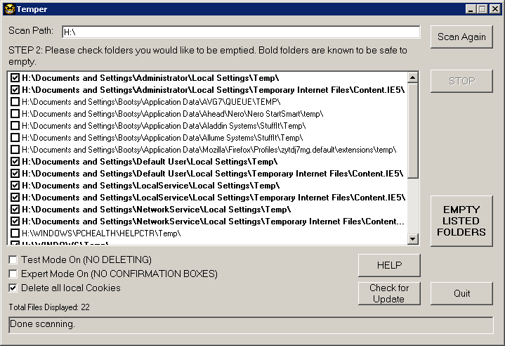 and Temporary Internet Files folders. |